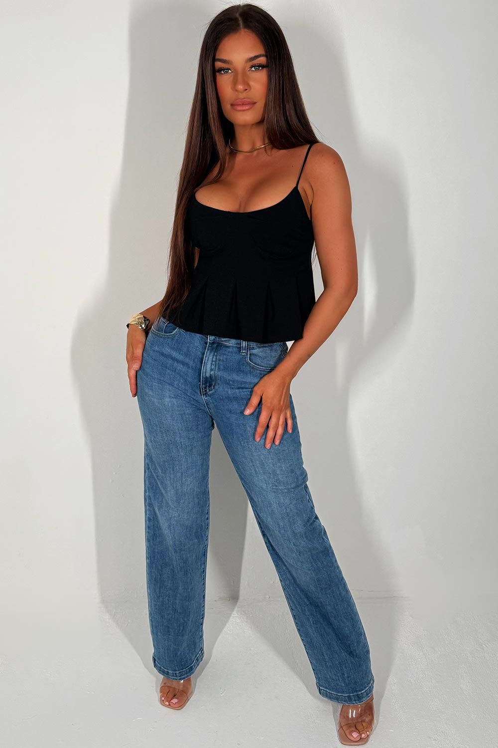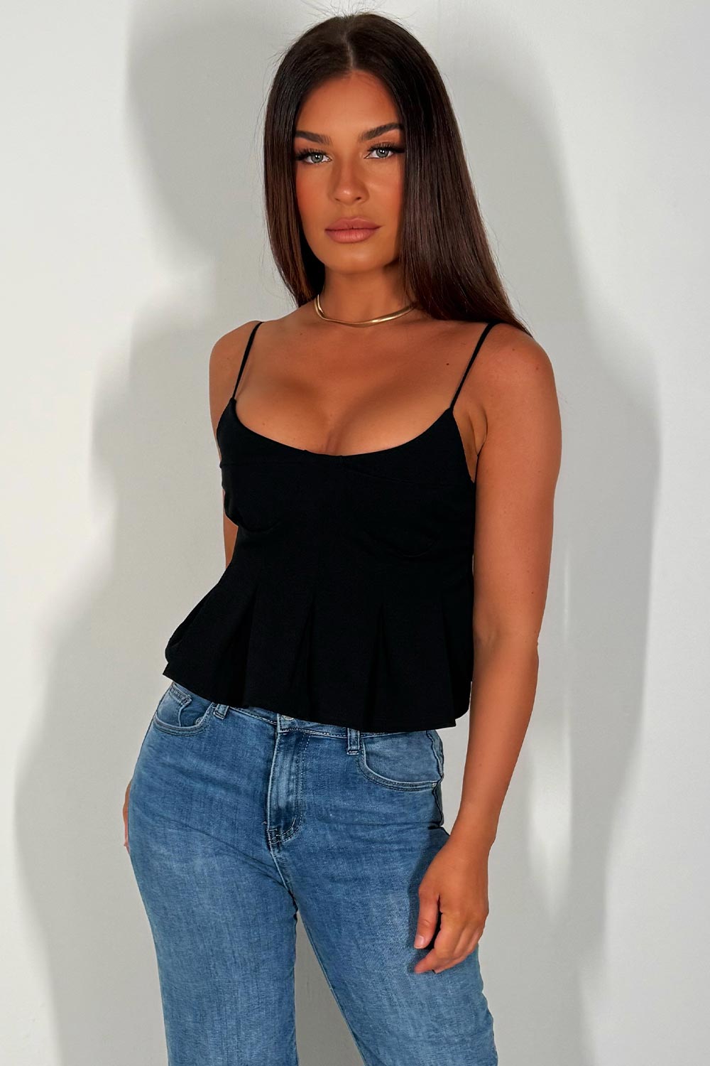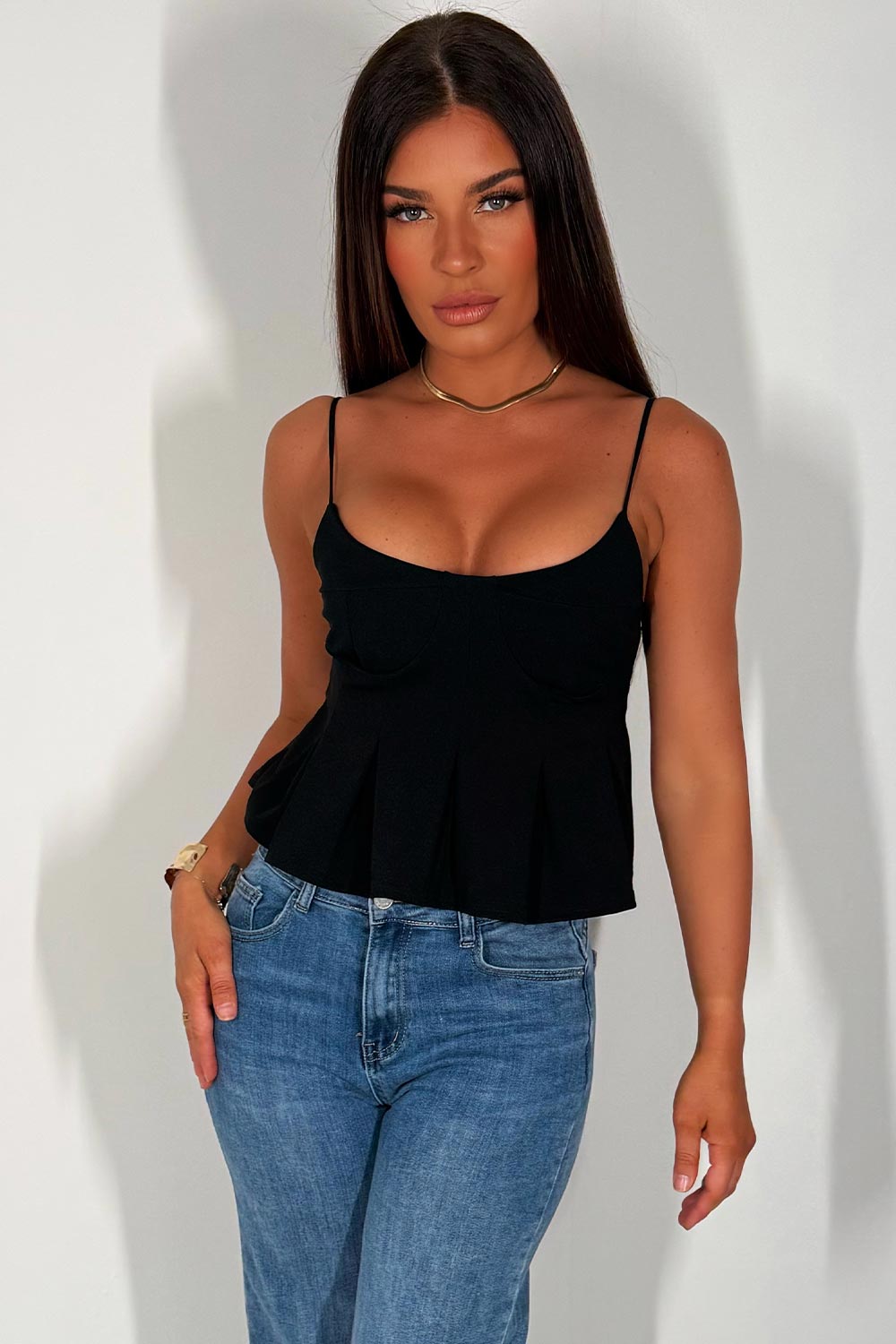 Peplum top with thin straps. This top is going to make any outfit look stunning. Featuring peplum hem top with thin straps and cupped detail. Style this top with any outfit to compete the day to night look we are loving. This cupped peplum top is also available in other colours.