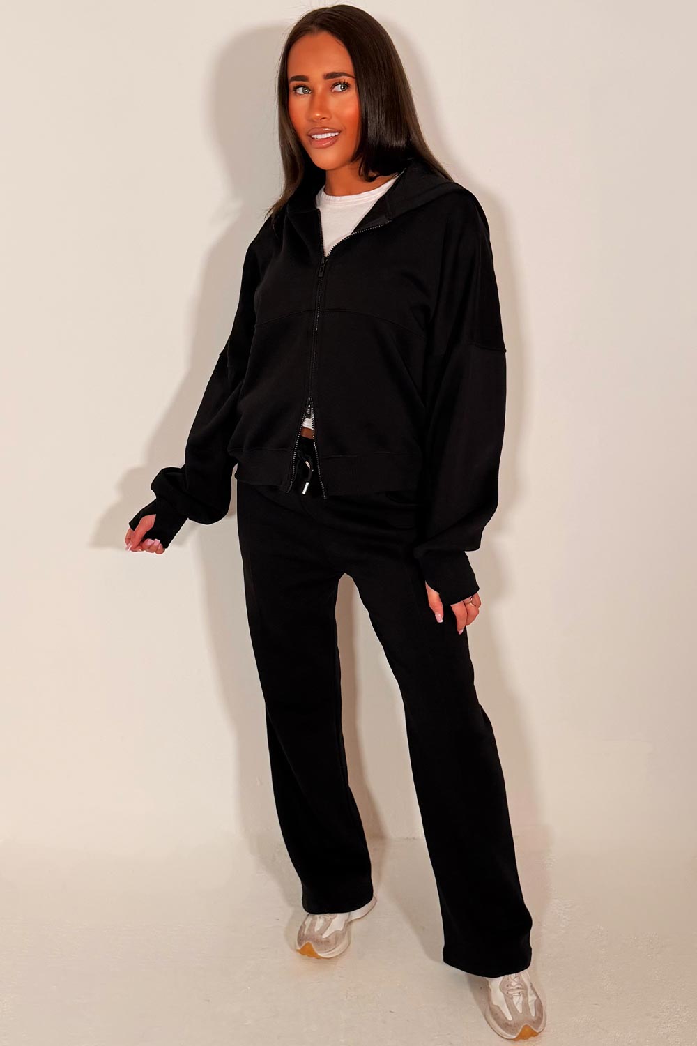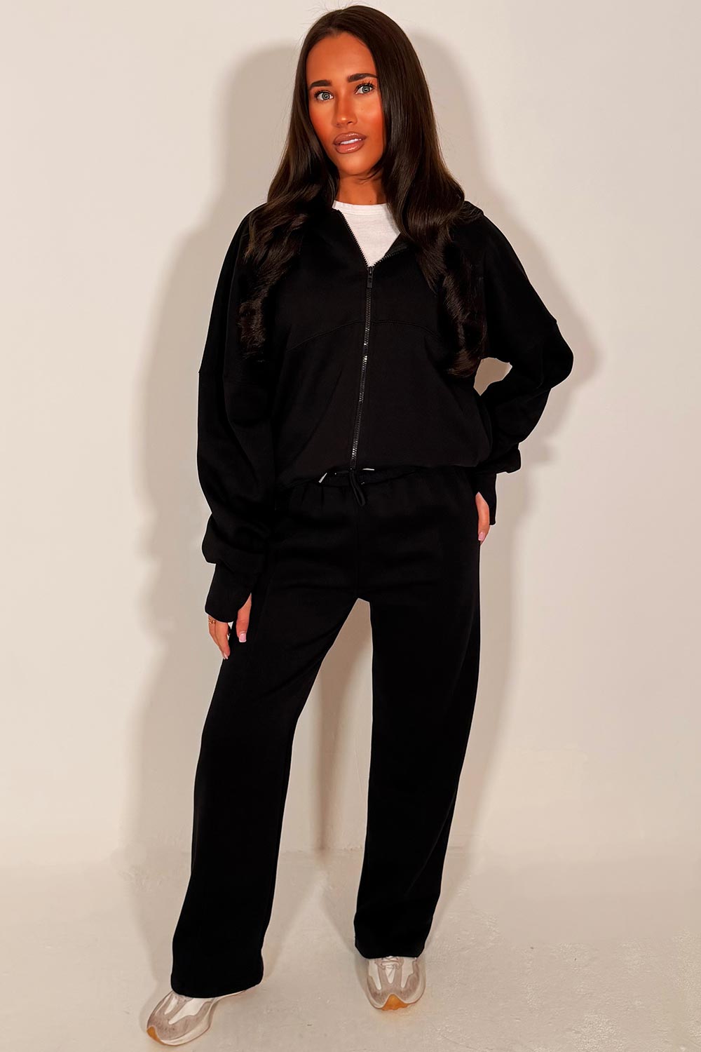 Zip Up Hoodie And Jogger Tracksuit Co Ord Set Black