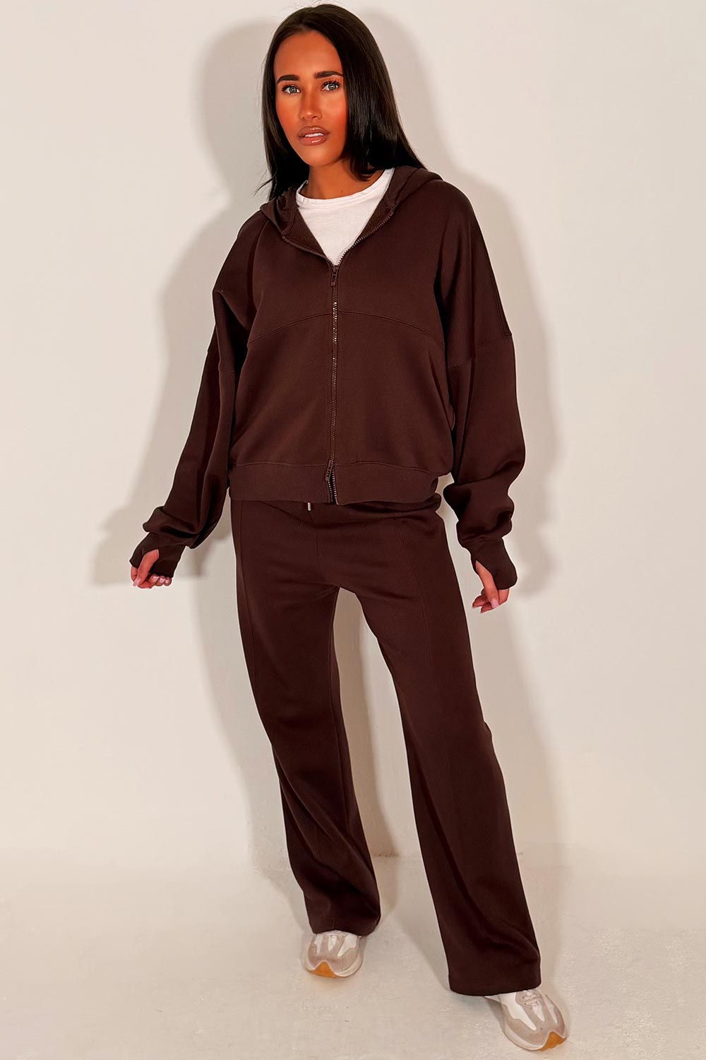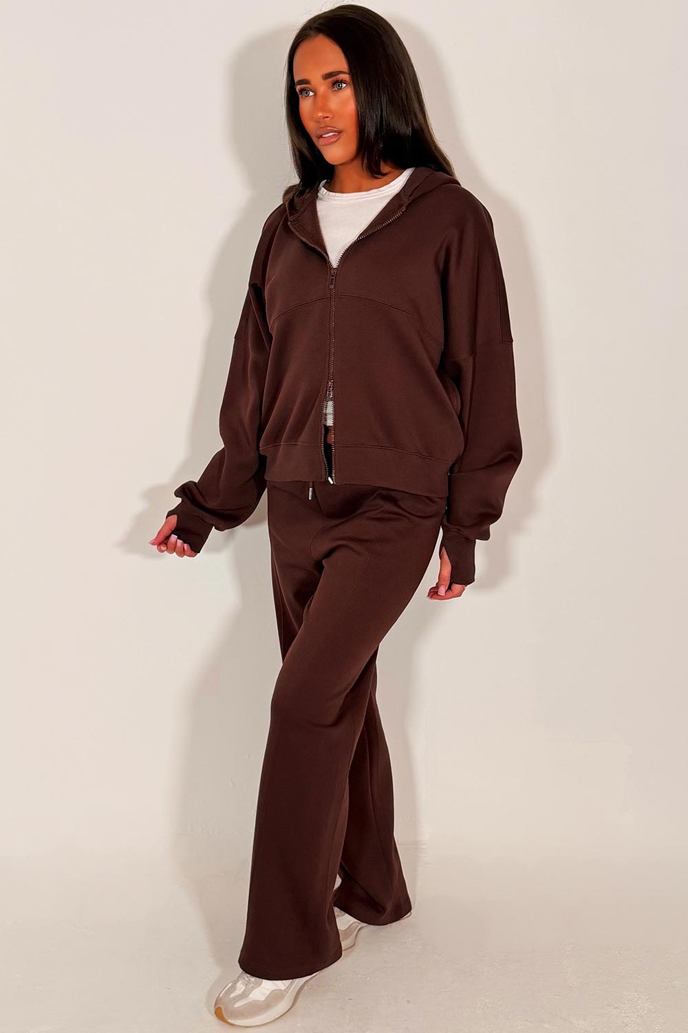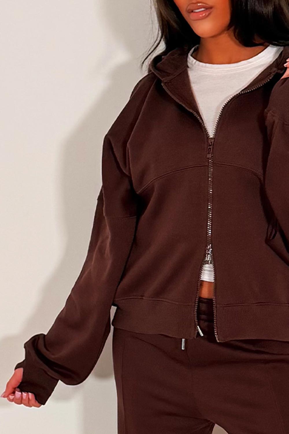 Zip Up Hoodie And Jogger Tracksuit Co Ord Set Brown