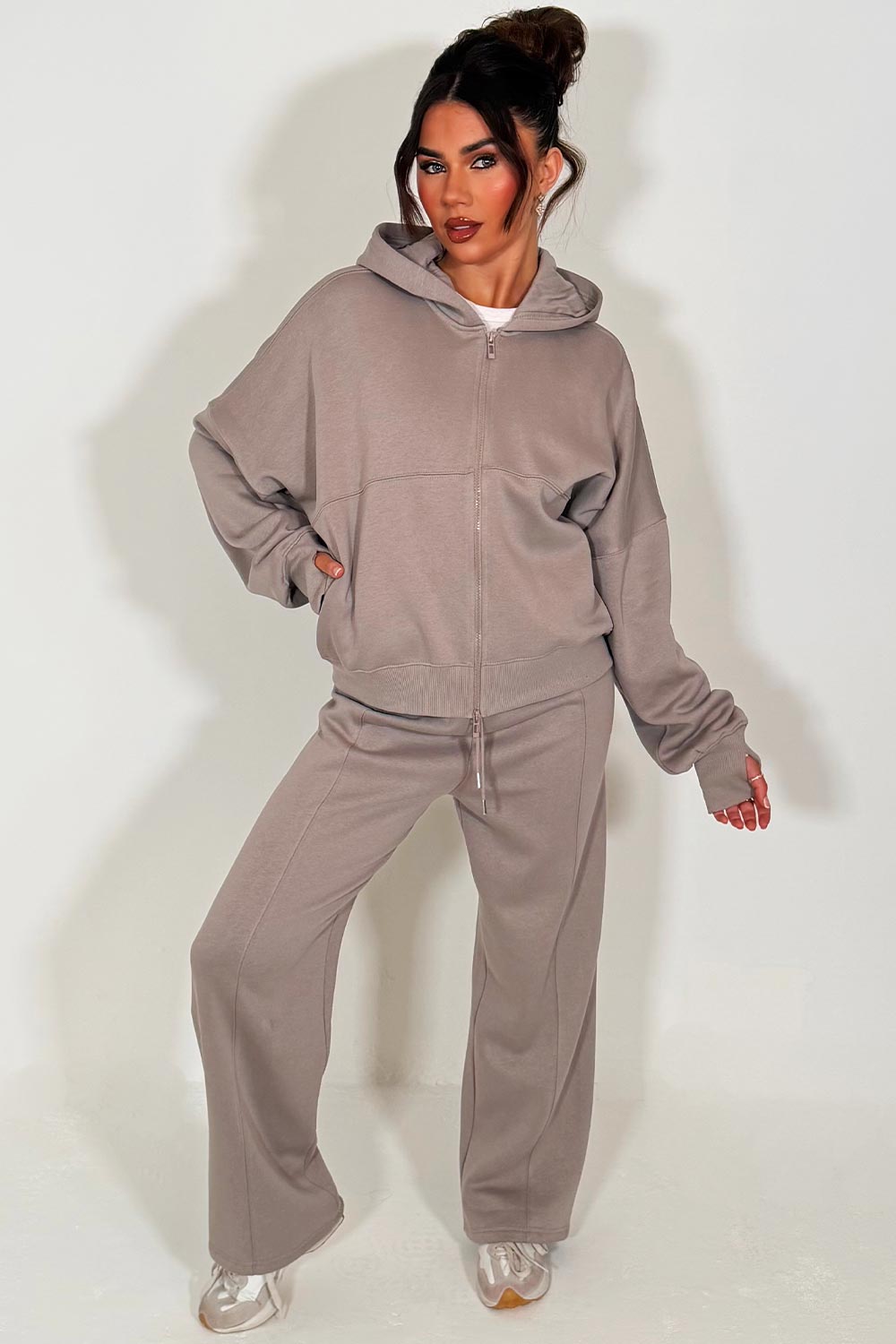 Zip Up Hoodie And Jogger Tracksuit Co Ord Set Dove Grey