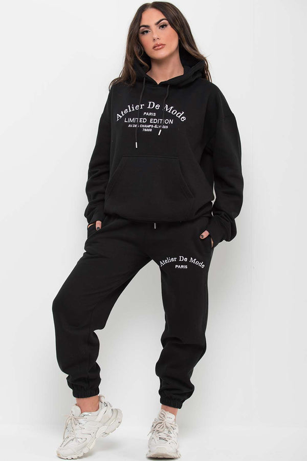 Black Hoodie and Joggers Loungewear Set Limited Edition Slogan
