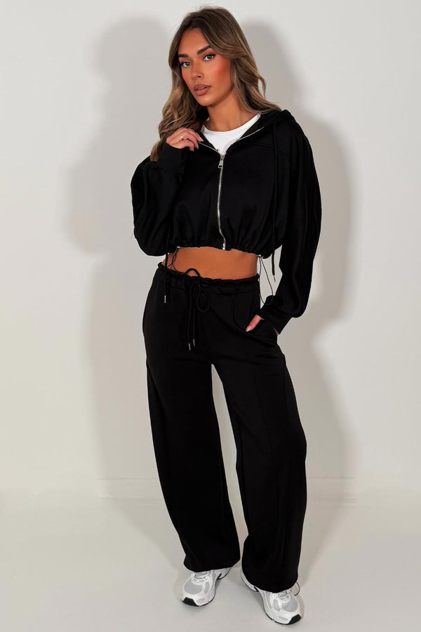 Black Oversized Zip up Hoodie & Joggers Tracksuit With Elasticated Hem