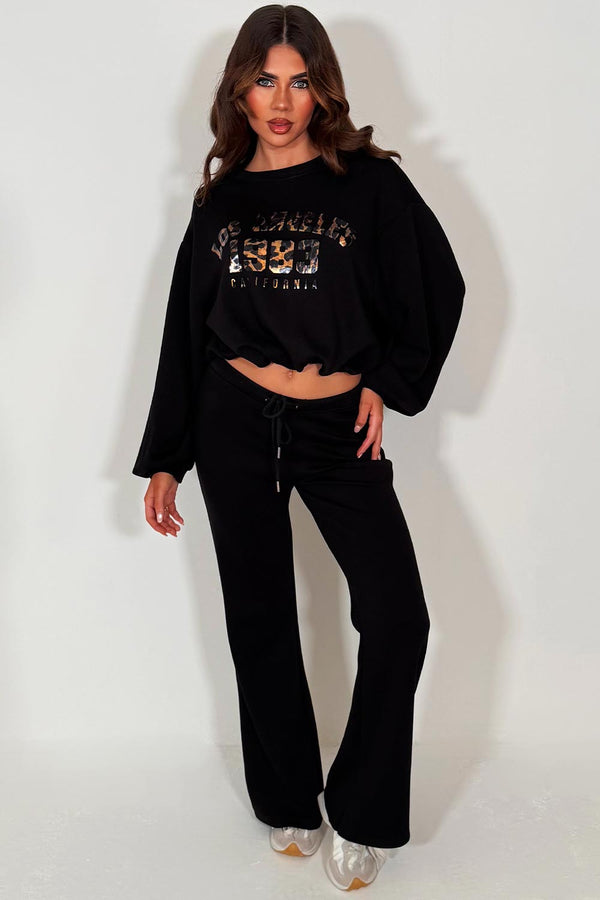 Black Sweatshirt And Bell Bottom Trouser Lounge Set