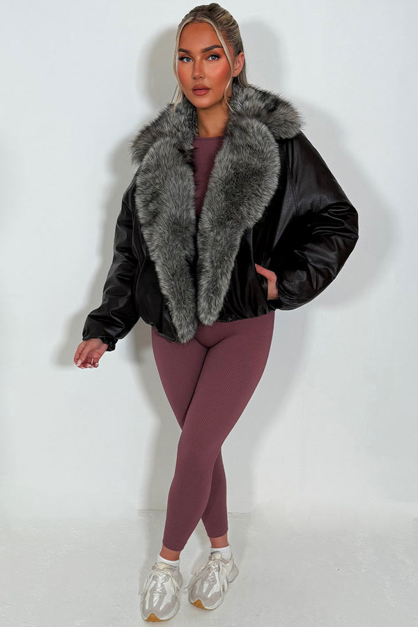 Bomber jacket with fur collar and trim. Featuring premium bomber jacket with lapel fur collar front fur trim really cosy and warm oversized fit. Style this contrast fur collar bomber...