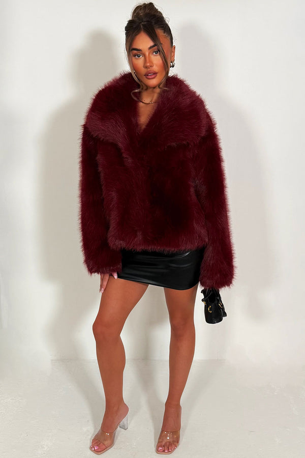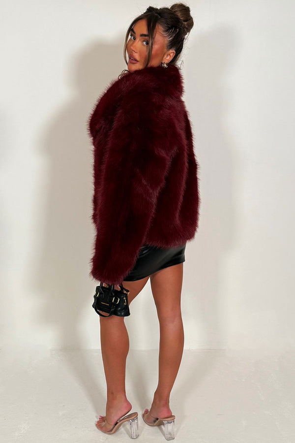 Burgundy Faux Fur Jacket Collared