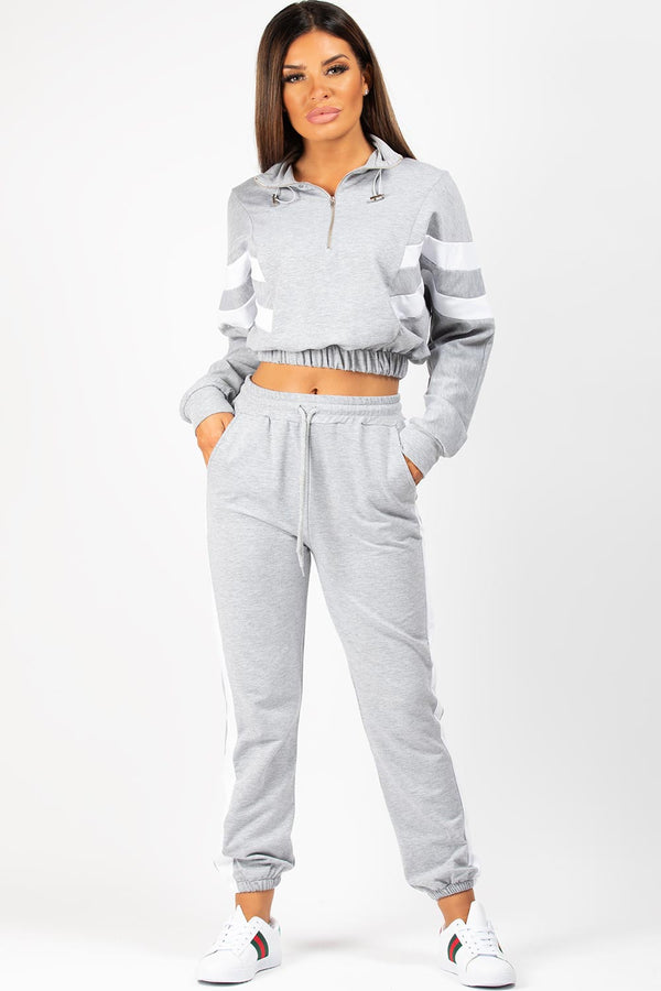 Lounge and chill like Chloe Ferry in our cropped striped loungewear set. Featuring cropped sweatshirt with half zip and elasticated waist and matching elasticated waist joggers with cuffed bottoms, bold...