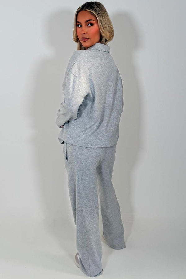 Collared Button Up Front Sweatshirt And Joggers Loungewear Set Gray
