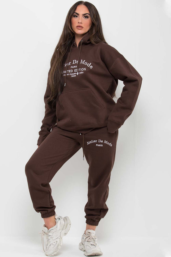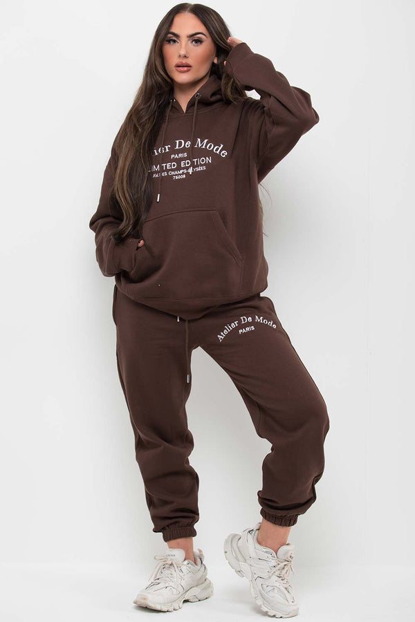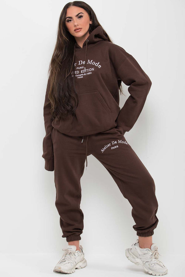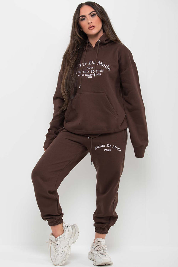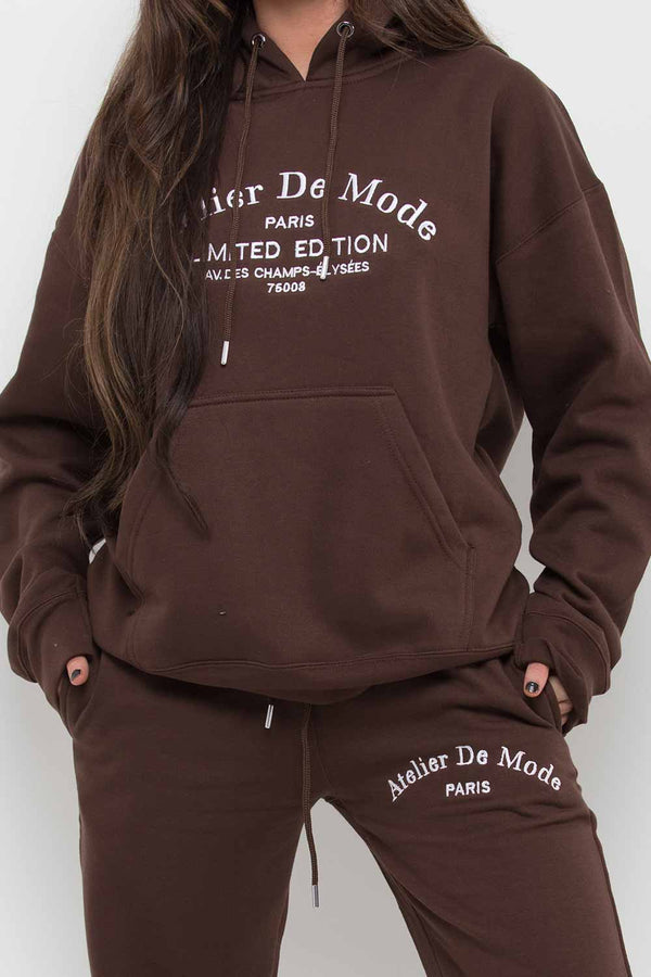Brown Hoodie and Joggers Loungewear Set Limited Edition Slogan