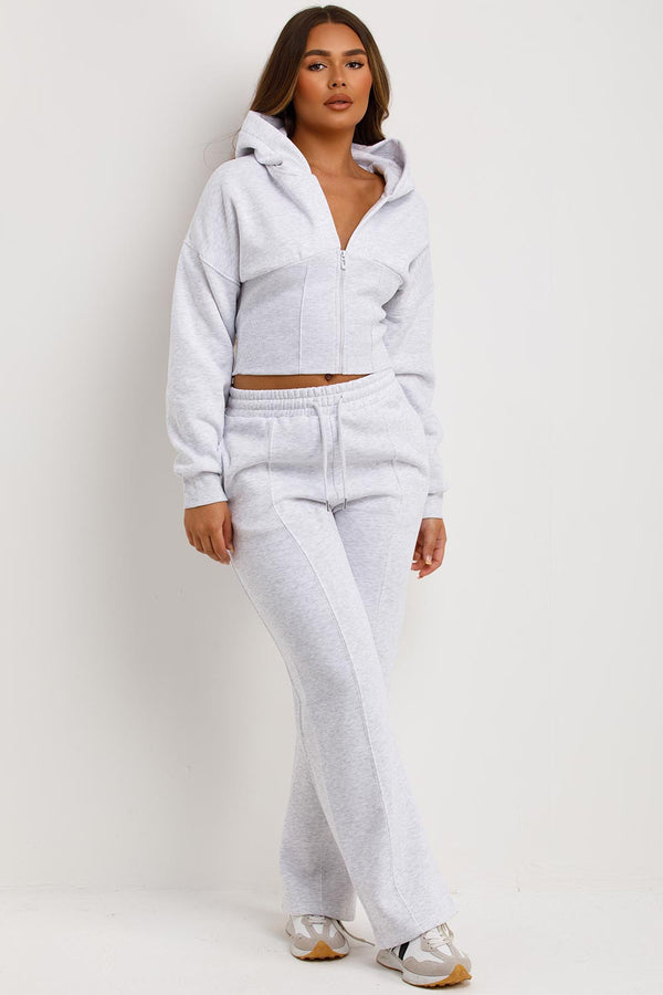 Corset Hoodie And Joggers Tracksuit Co Ord Set Grey Marl