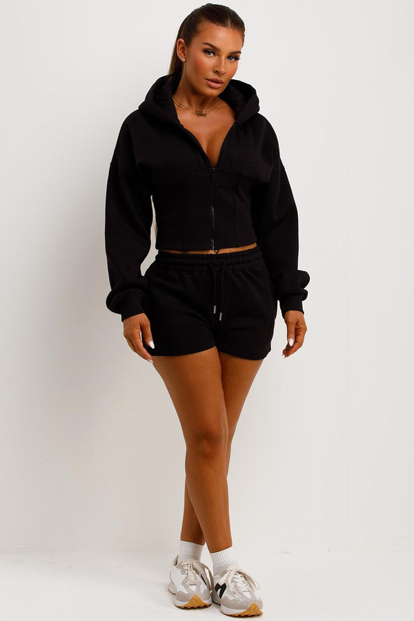 Corset Hoodie And Short Tracksuit Co Ord Set Black