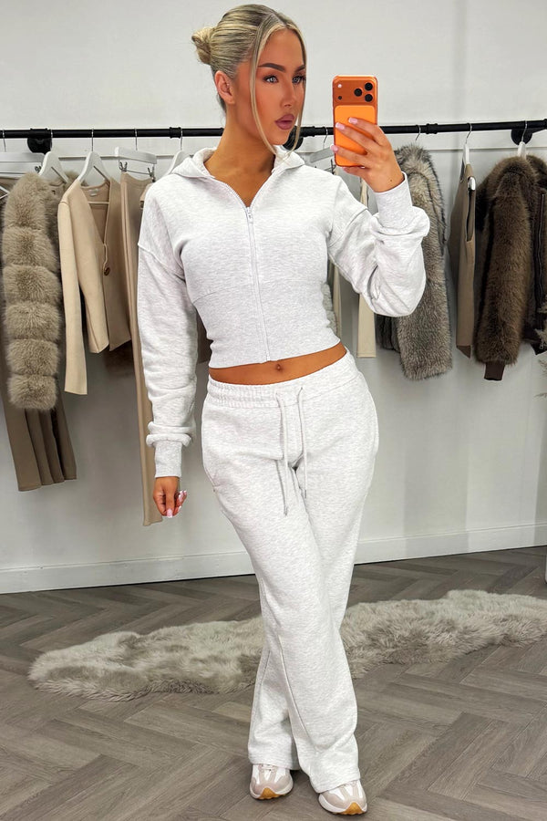Corset Zip Up Crop Hoodie And Jogger Tracksuit Co Ord Set Grey Marl