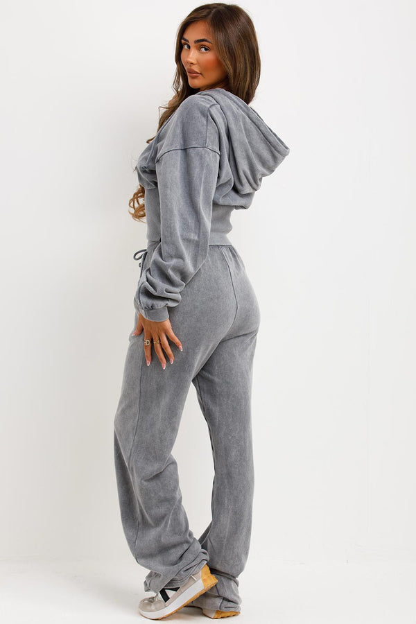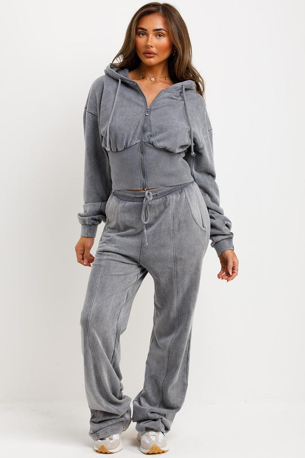 Corset Zip Up Hoodie And Joggers Tracksuit Co Ord Set Silver Grey