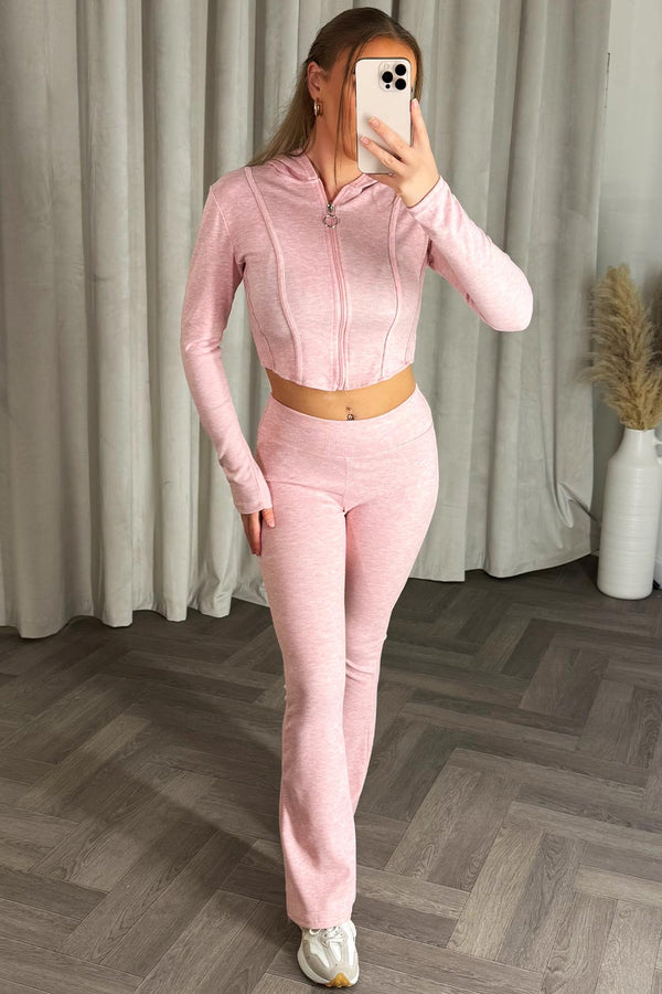 Crop Hoodie And Flared Trousers Loungewear Co Ord Set Pink