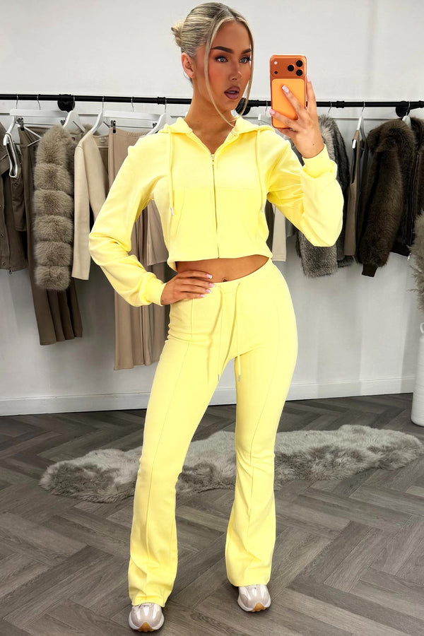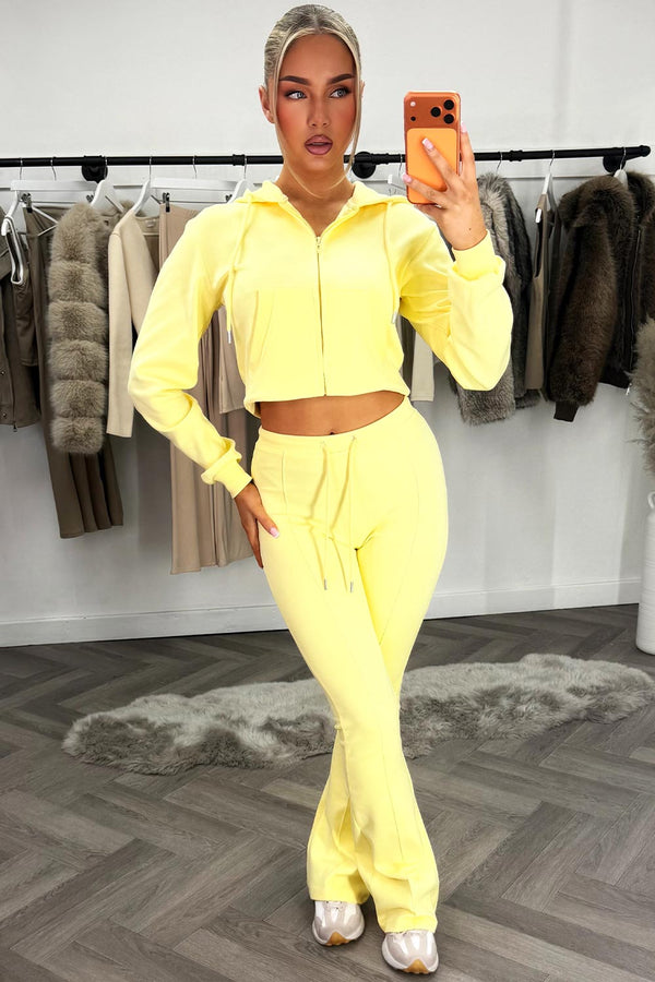 Crop Sweatshirt Hoodie And Bell Bottom Trousers Loungewear Set Yellow