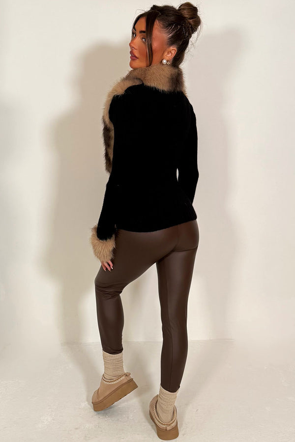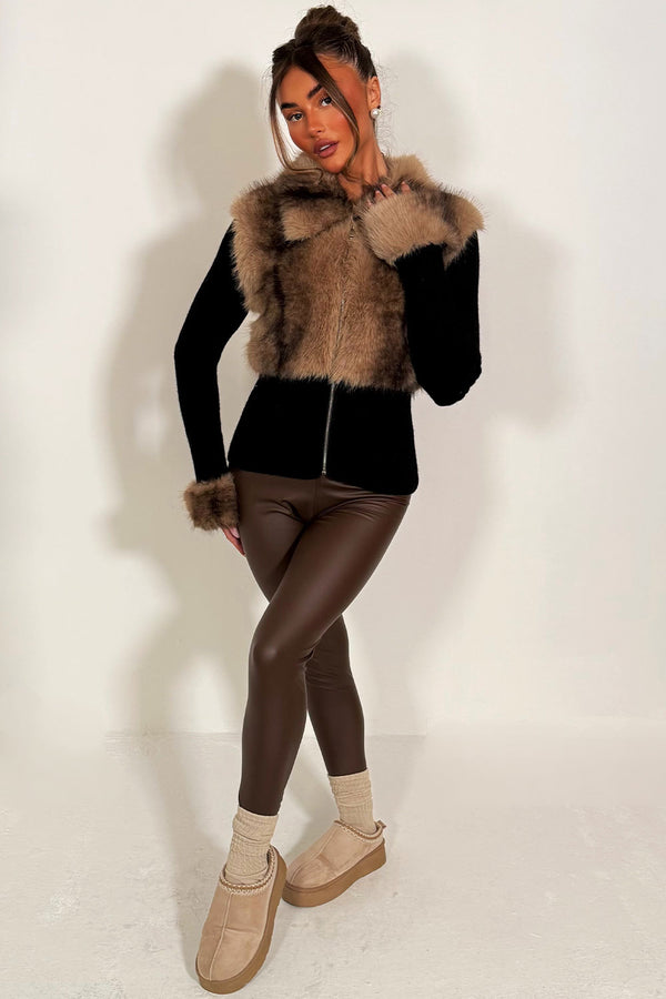 Faux fur cardigan jumper. Featuring long sleeve faux fur ribbed cardigan jumper with zip fastening premium quality. Style this long sleeve faux fur ribbed cardigan with any outfit to complete...