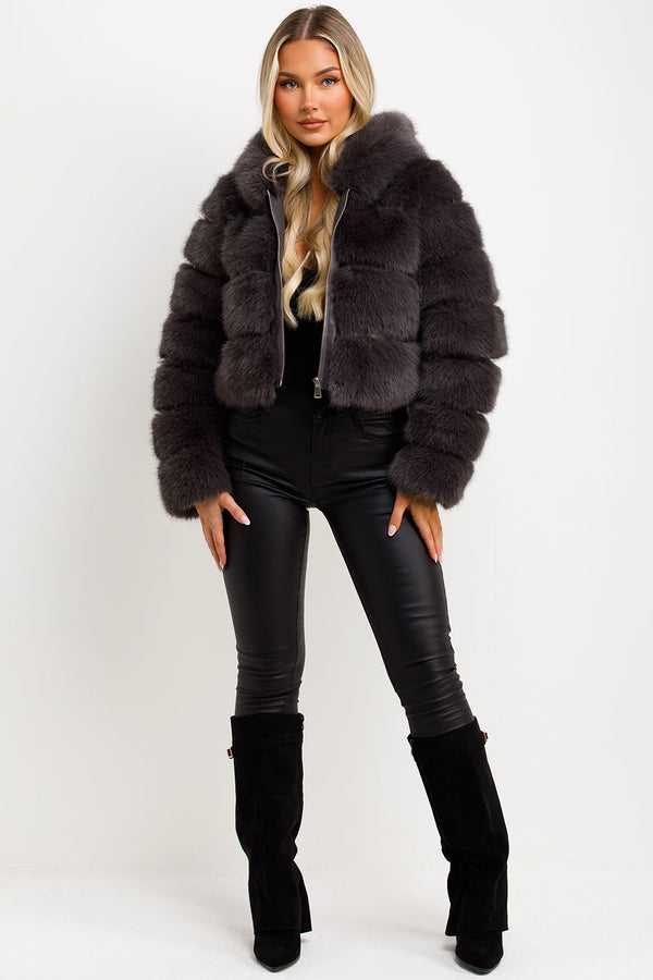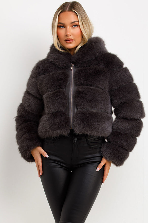 Faux fur coat with hood. This faux fur coat is the hottest trend right now for this coming new season. Featuring premium quality thick lush faux fur coat short length with...
