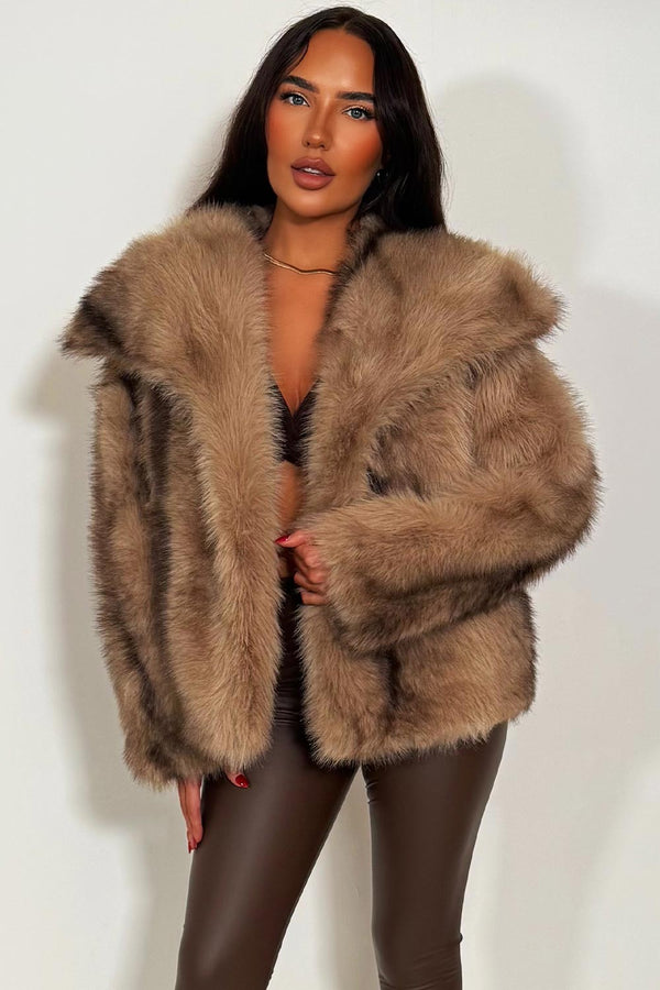 Fur jacket with collar. This faux fur jacket is a NEED for this new season. This premium fur jacket features faux fur vegan friendly button fastening pockets oversized look really...