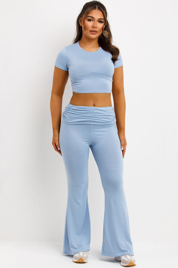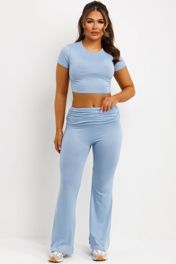 Fold Over Flared Trousers And Top Co Ord Set Baby Blue
