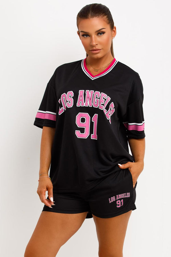 Football Jersey T Shirt And Shorts Co Ord Set With Los Angeles Print Black