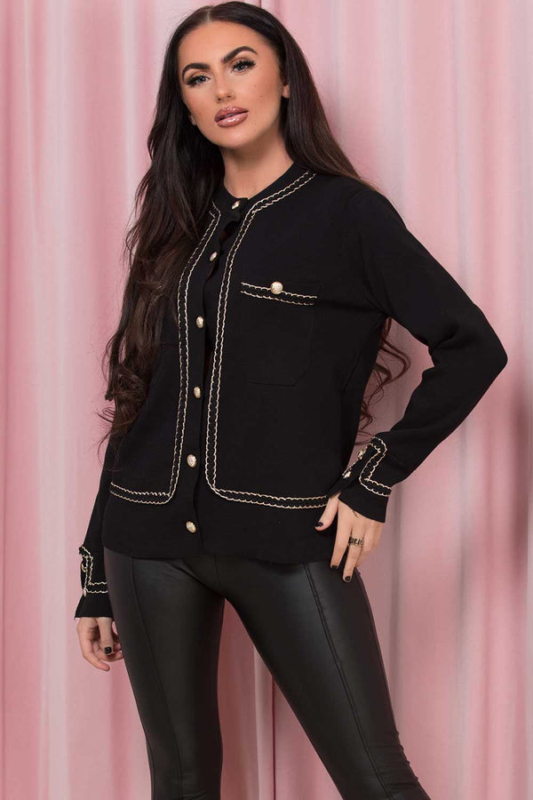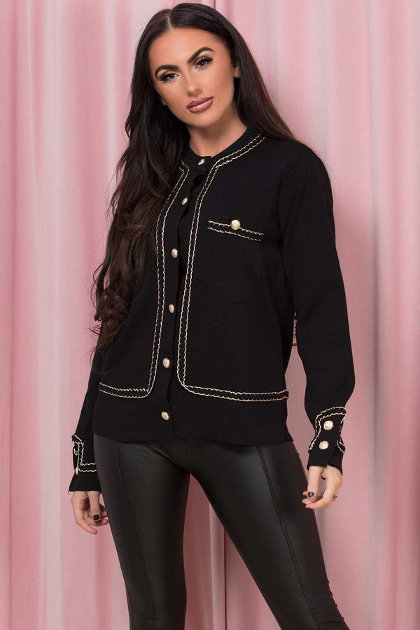 Gold Button Detail Cardigan Top Black