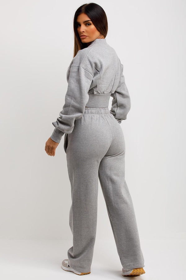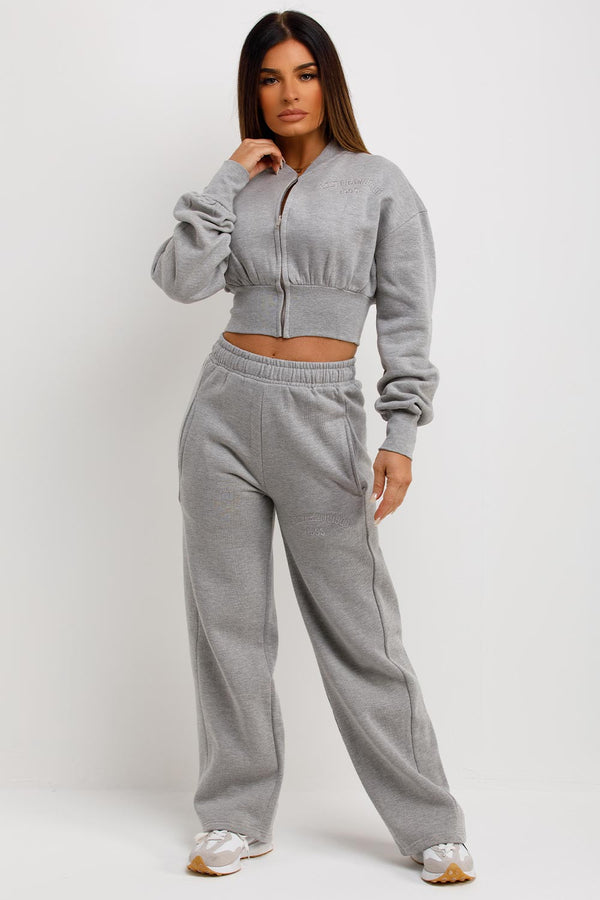 Tracksuit with straight leg and embroidery detail. This crop tracksuit must be added to your daily outfit collection babe. Featuring crop tracksuit top with zip fastening and matching elasticated high...