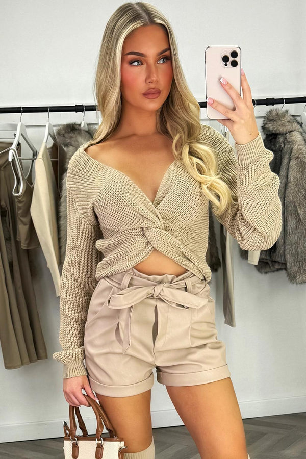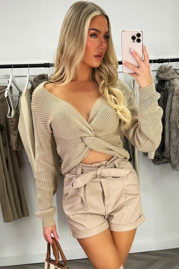 Knitted jumper with twist front. Long sleeve twist front knitted jumper with drop shoulders relaxed fit and crop length. Layer up with this twist front knitted jumper to complete the...