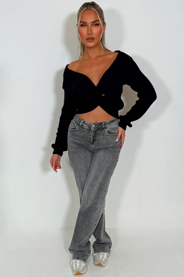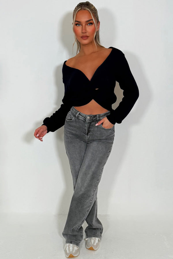 Knitted jumper with twist front. Long sleeve twist front knitted jumper with drop shoulders relaxed fit and crop length. Layer up with this twist front knitted jumper to complete the...