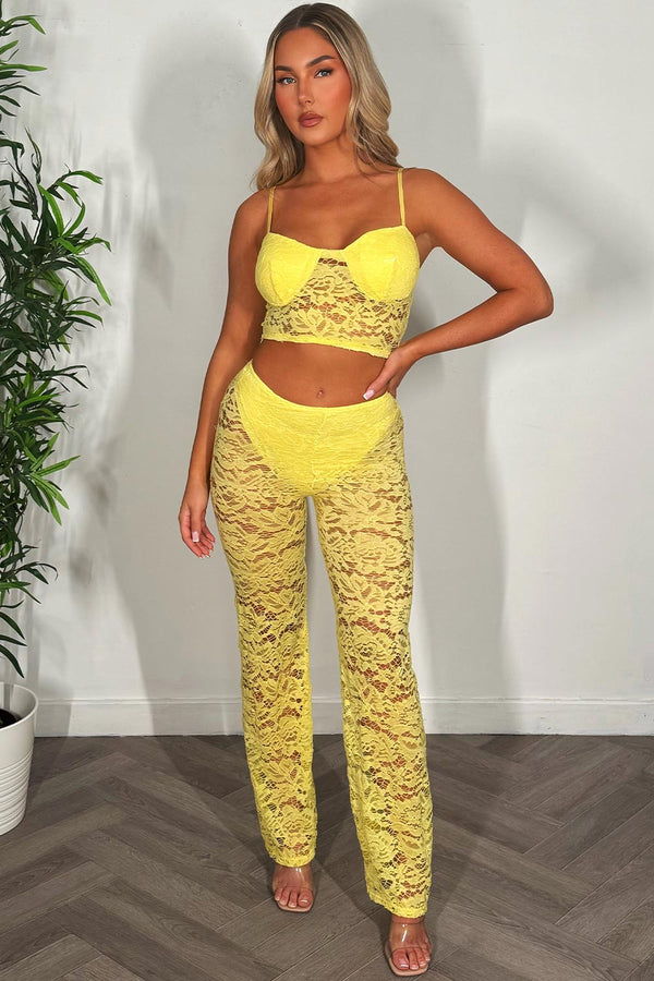 Lace Flared Trousers And Top Two Piece Co Ord Set Yellow