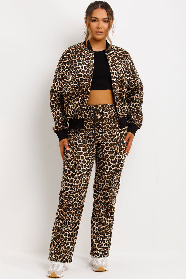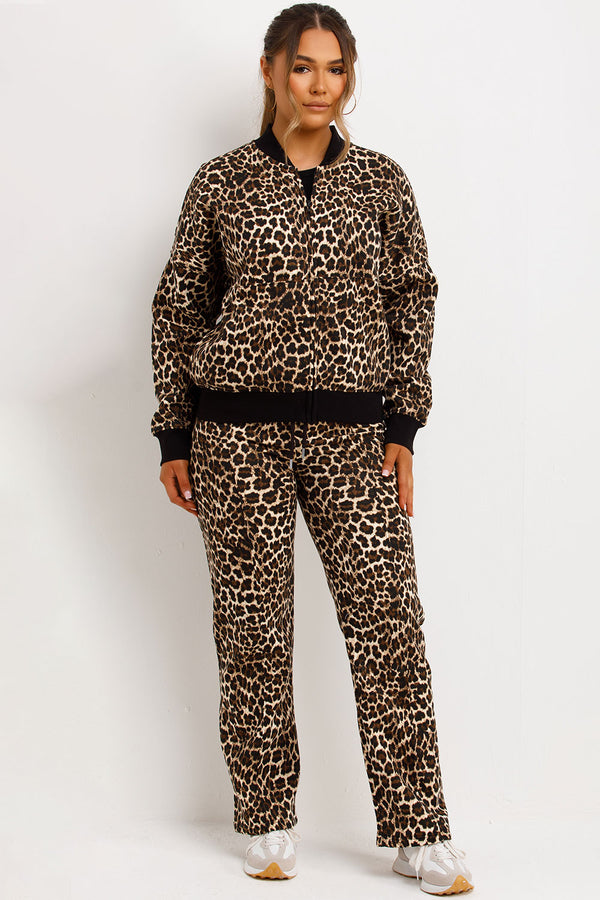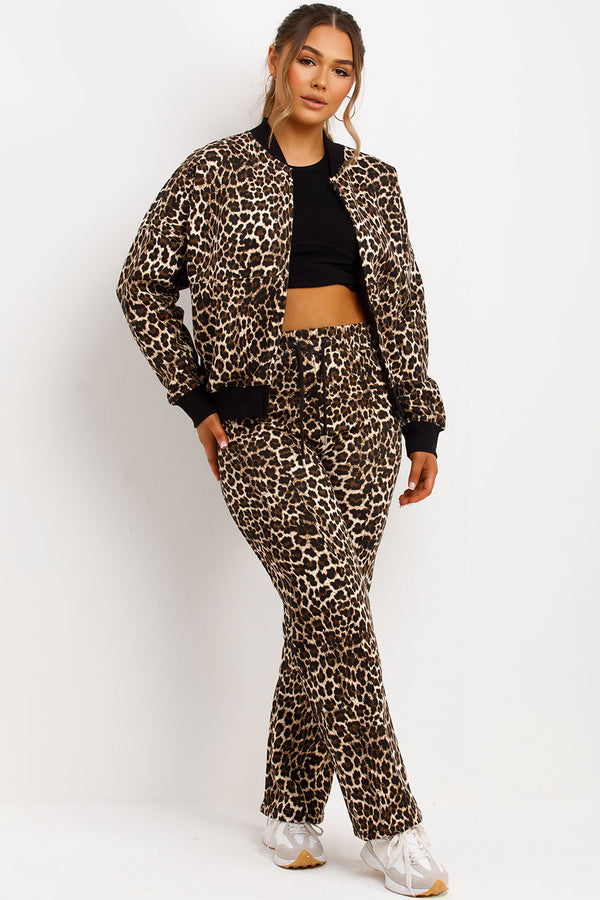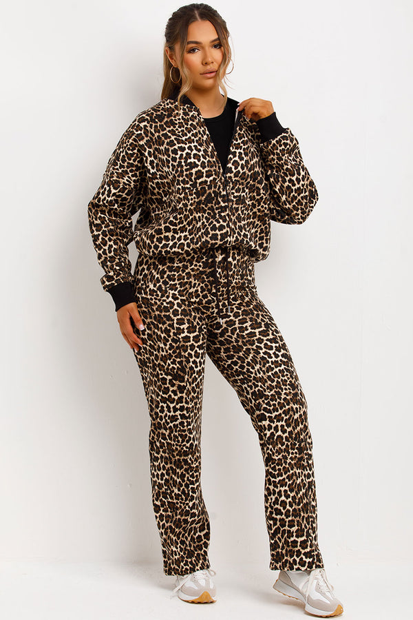 Leopard Print Bomber Sweatshirt With Zip And Joggers Loungewear Set