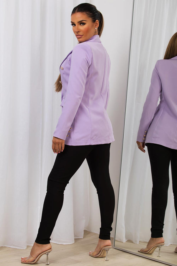 Lilac Double Breasted Blazer Jacket With Gold Buttons