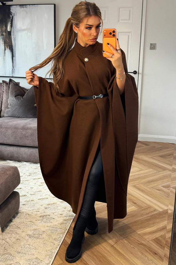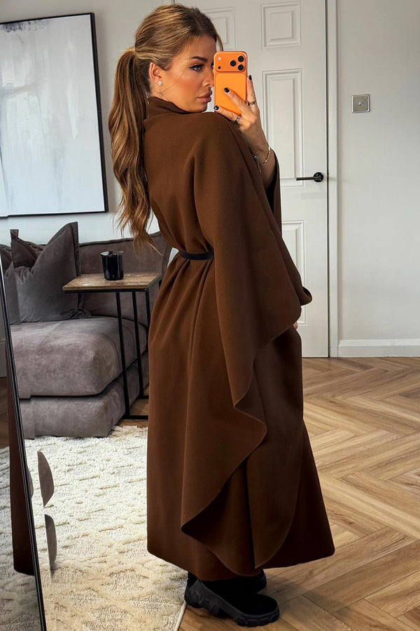 Long Cape With Belt Brown
