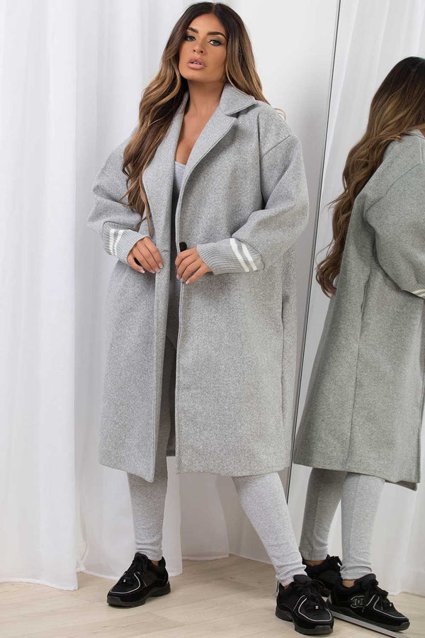 Oversized wool coat with ribbed cuff. This long wool coat has your name written on it. Featuring oversized fit ribbed cuffs and button fastening. Style it with our unitards or...