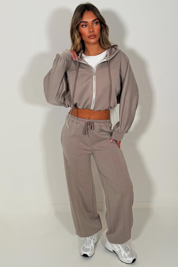 Oversized Zip up Hoodie & Joggers Tracksuit With Elasticated Hem Dove Grey