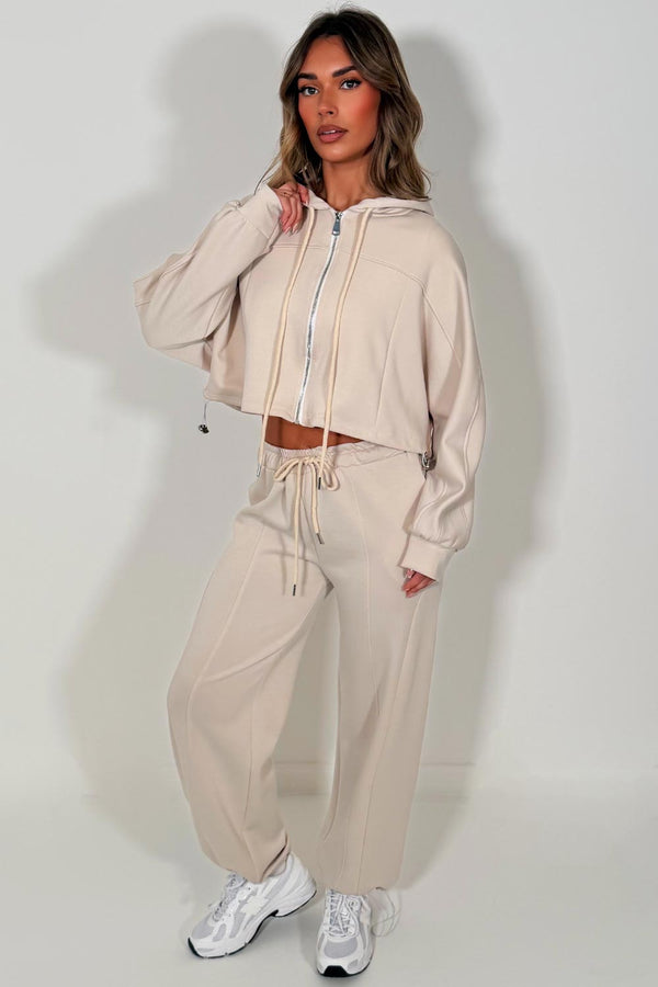 Oversized Zip up Hoodie & Joggers Tracksuit With Elasticated Hem Oatmeal