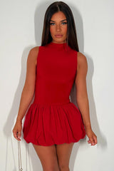 Puffball Mini Dress Red