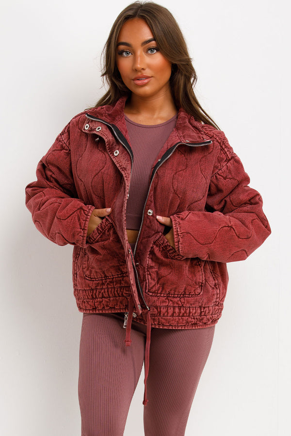 Quilted Jacket With Adjustable Drawstring Hem Burgundy