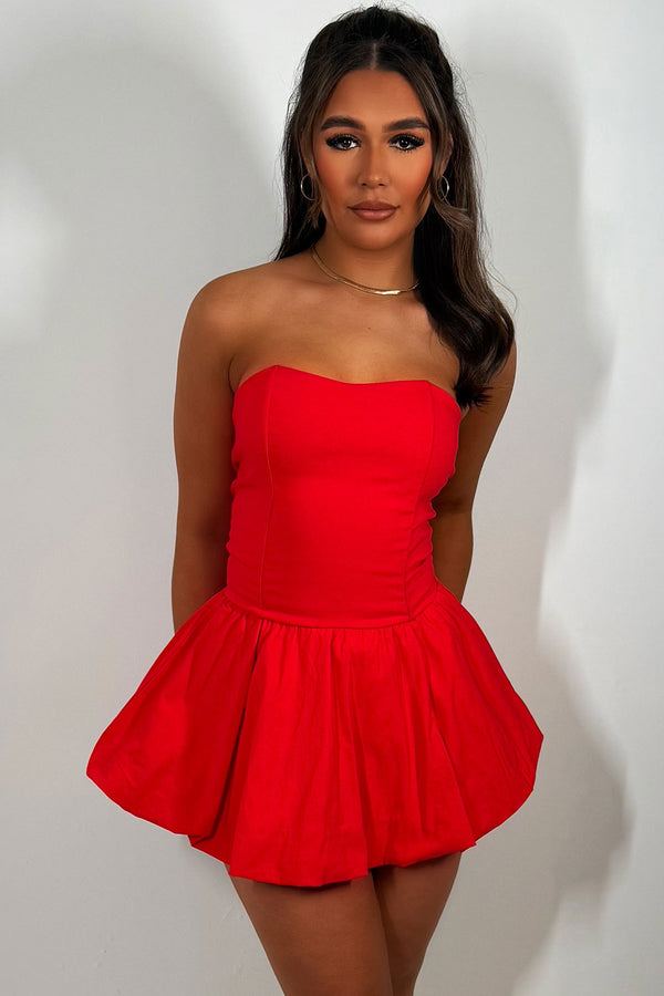 Red Mini Puffball Bandeau Dress With Cut Out Back
