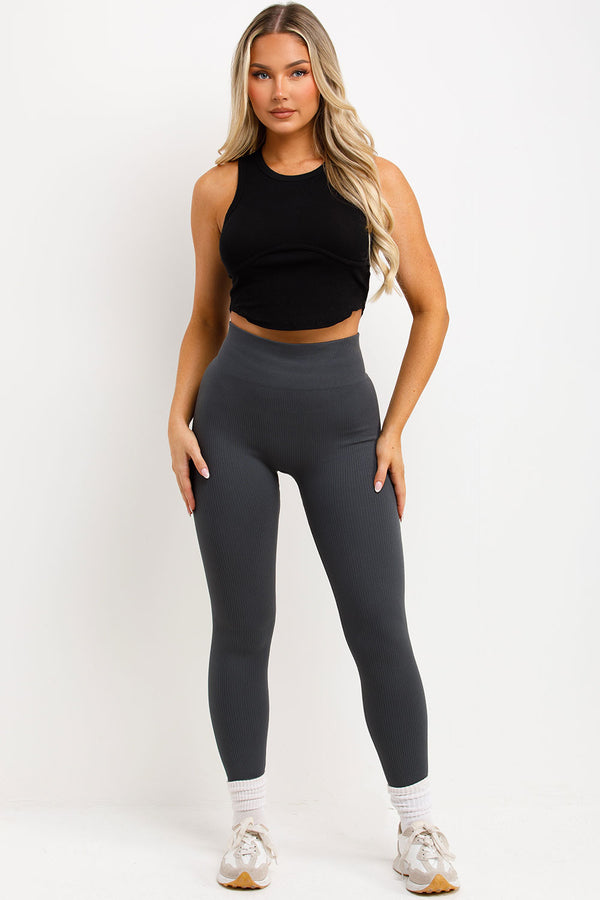 Ribbed Gym Yoga Leggings High Waist Charcoal