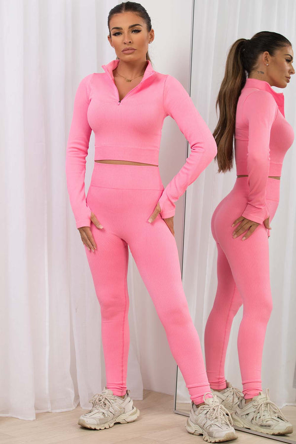 Ribbed lounge set with half zip. This loungewear set will refresh your casual or gym wear wardrobe. Featuring premium stretch ribbed long sleeve top with half zip detail and matching...