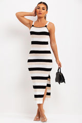 Striped midi dress with side split ribbed. This midi dress is going to give you glam looks effortlessly. Featuring premium quality ribbed striped midi dress with side split. Style it with heels and matching accessories to complete the glam look we are loving. Also available in other colors.