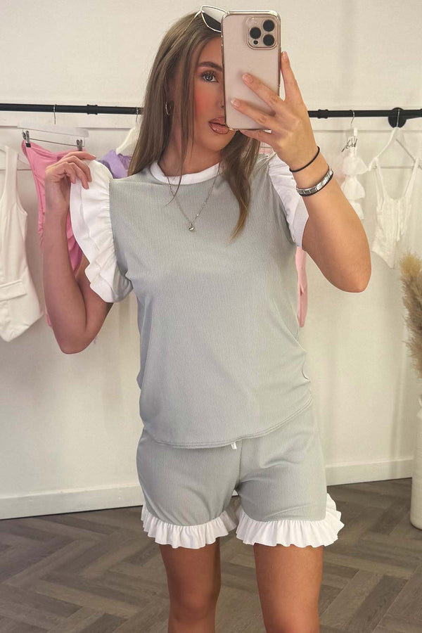 Shorts And Top Set With Ruffle Frill Detail Grey