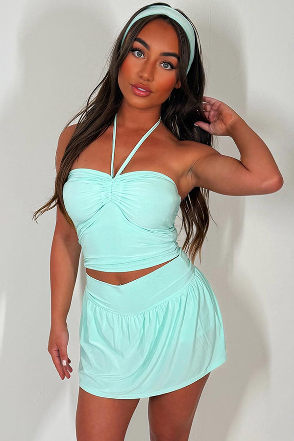Skort and crop top going out co ord set with matching headband. This is perfect going out summer festival outfit for you babe. This two piece set features skort skirt...