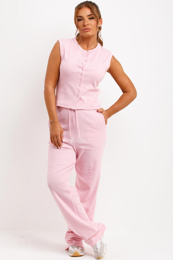 Sleeveless Top And Trouser Loungewear Co Ord Set Pink