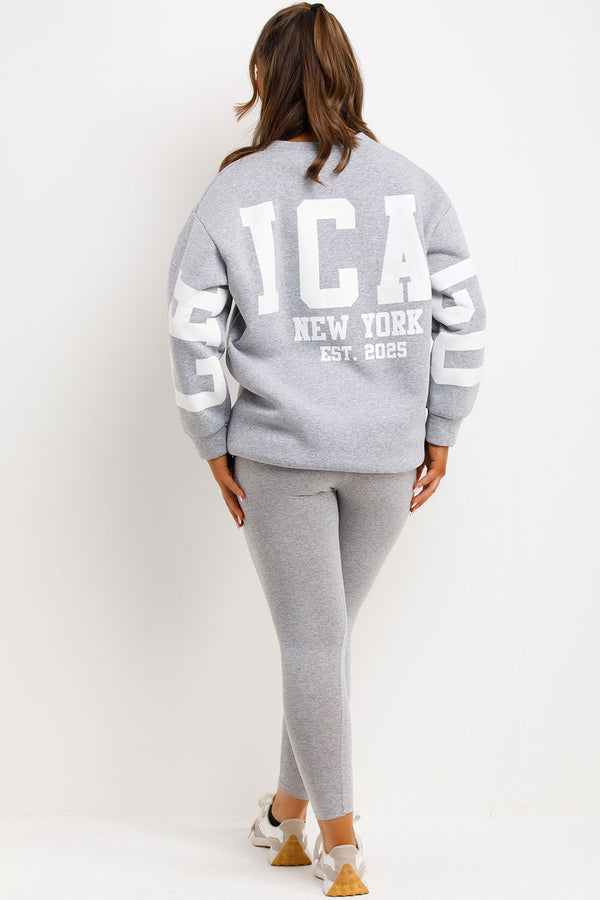 Sweatshirt And Leggings Set With Chicago Slogan Grey