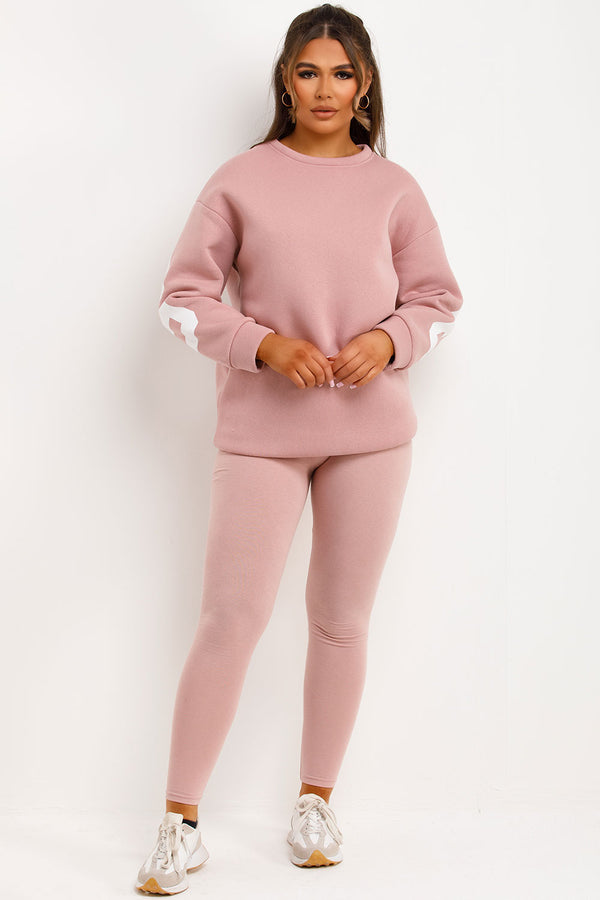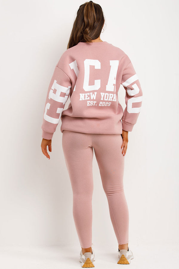 Sweatshirt And Leggings Set With Chicago Slogan Pink