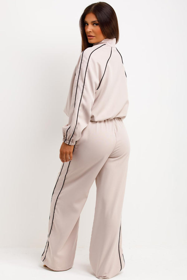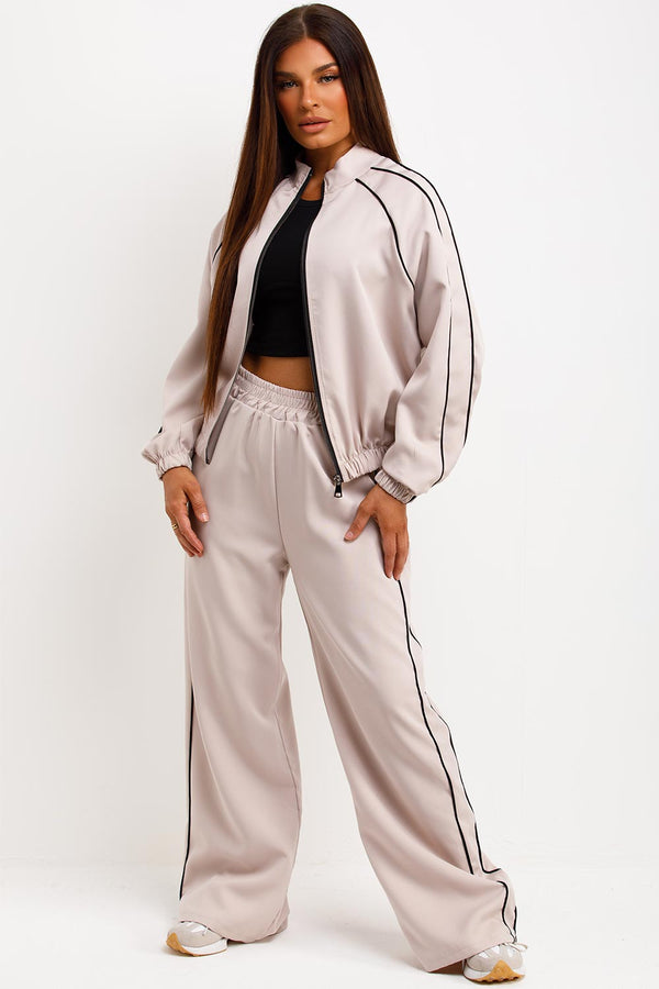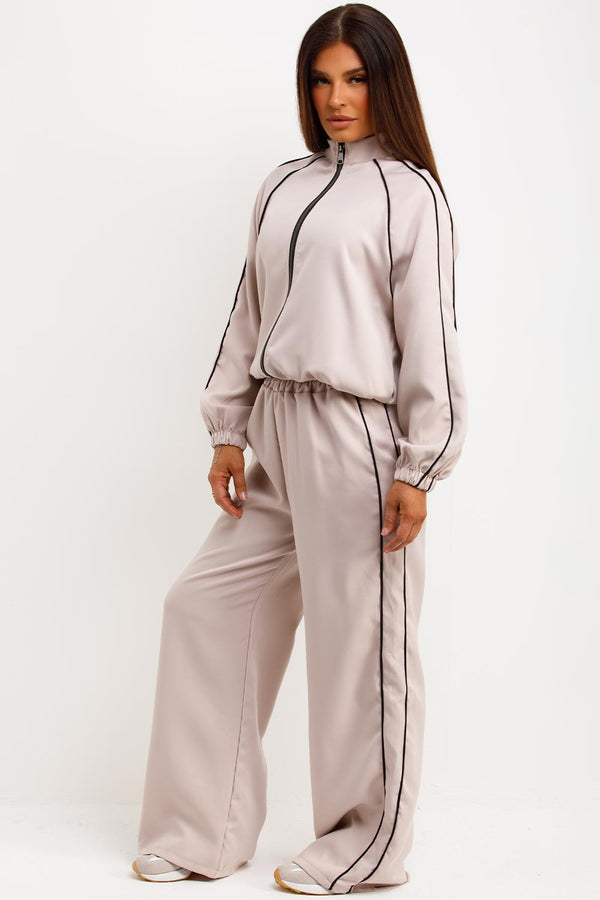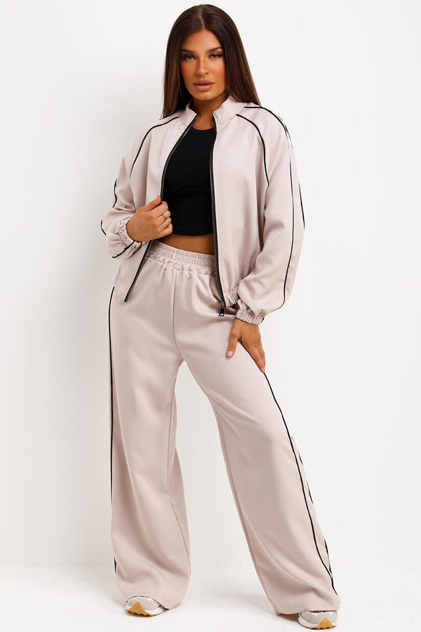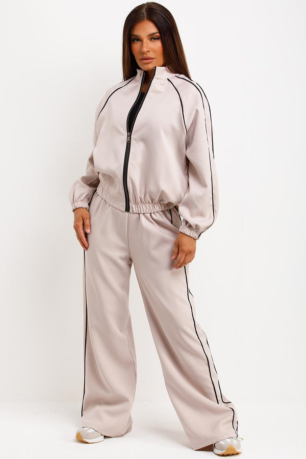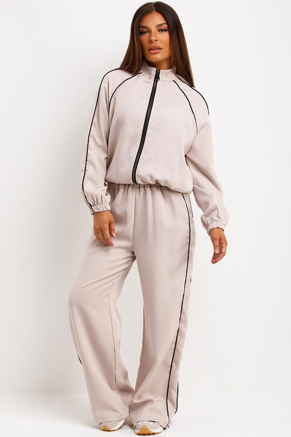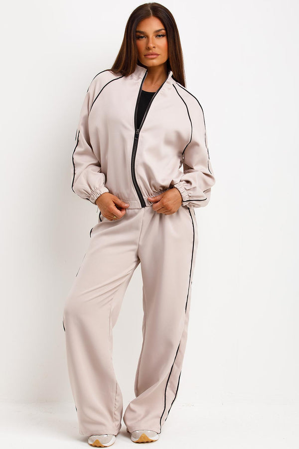 Tracksuit Jacket And Trousers Loungewear Set Beige