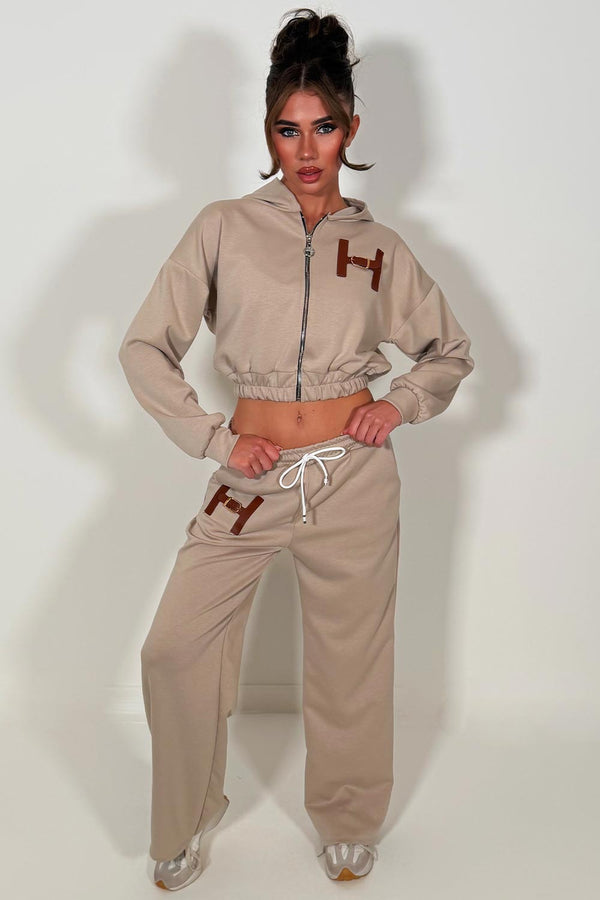 Tracksuit featuring crop zip up hoodie and joggers set with letter H. This crop tracksuit is a need for every dolls wardrobe. Wide leg joggers and crop zip up hoodie...