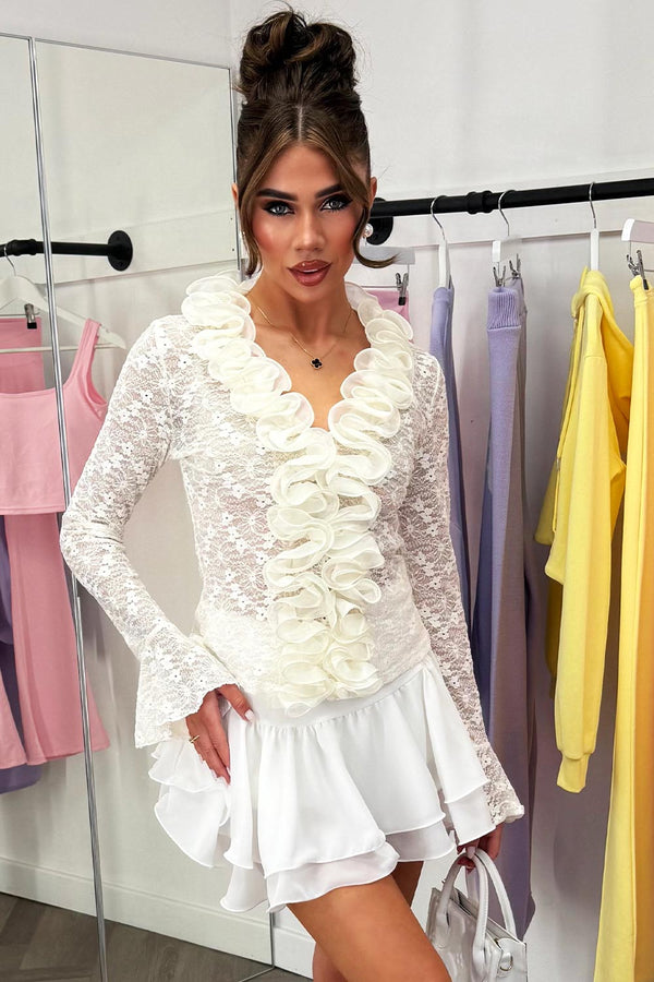 White Ruffle Mini Skirt