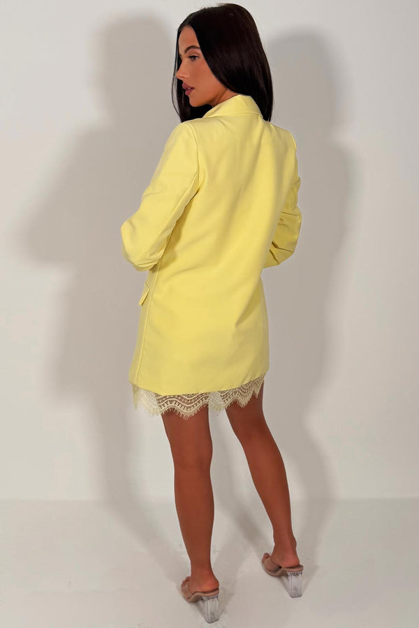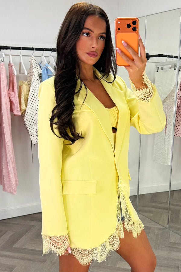 Yellow Oversized Blazer With Lace Trim