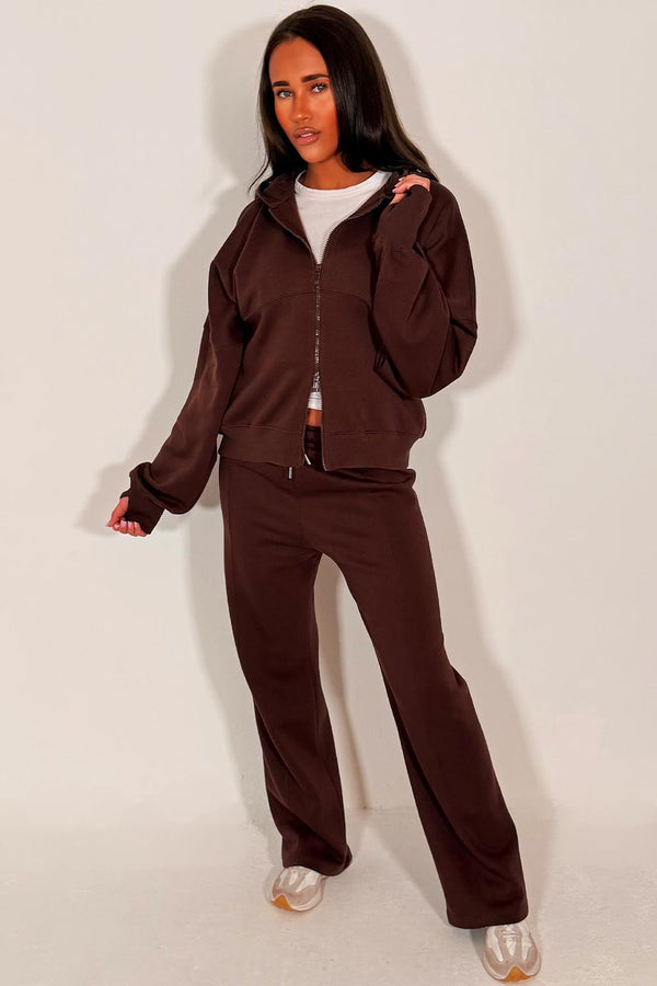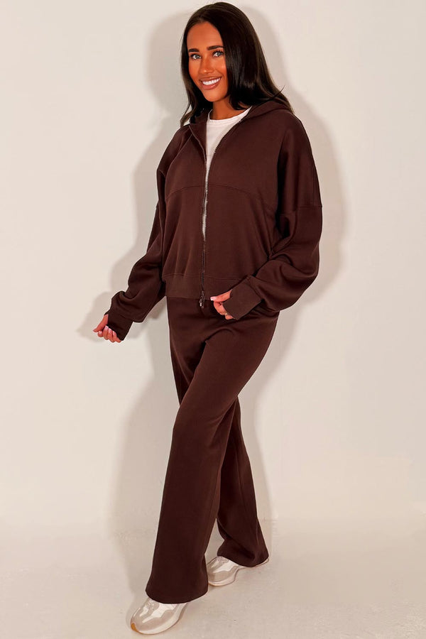 Zip Up Hoodie And Jogger Tracksuit Co Ord Set Brown